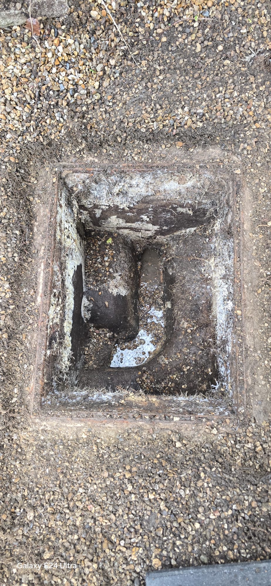 Plumbers for Drains attended a property in Farnborough following reports of a collapsed inspection cover and a blocked drain. Upon inspection, we found that stones had fallen into the chamber, causing a significant blockage.