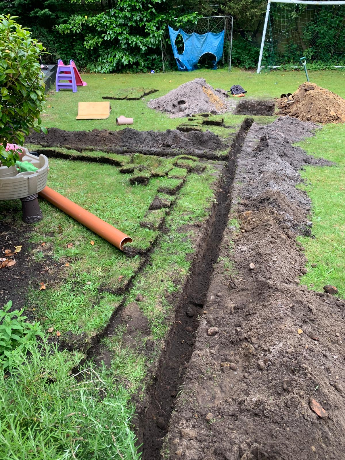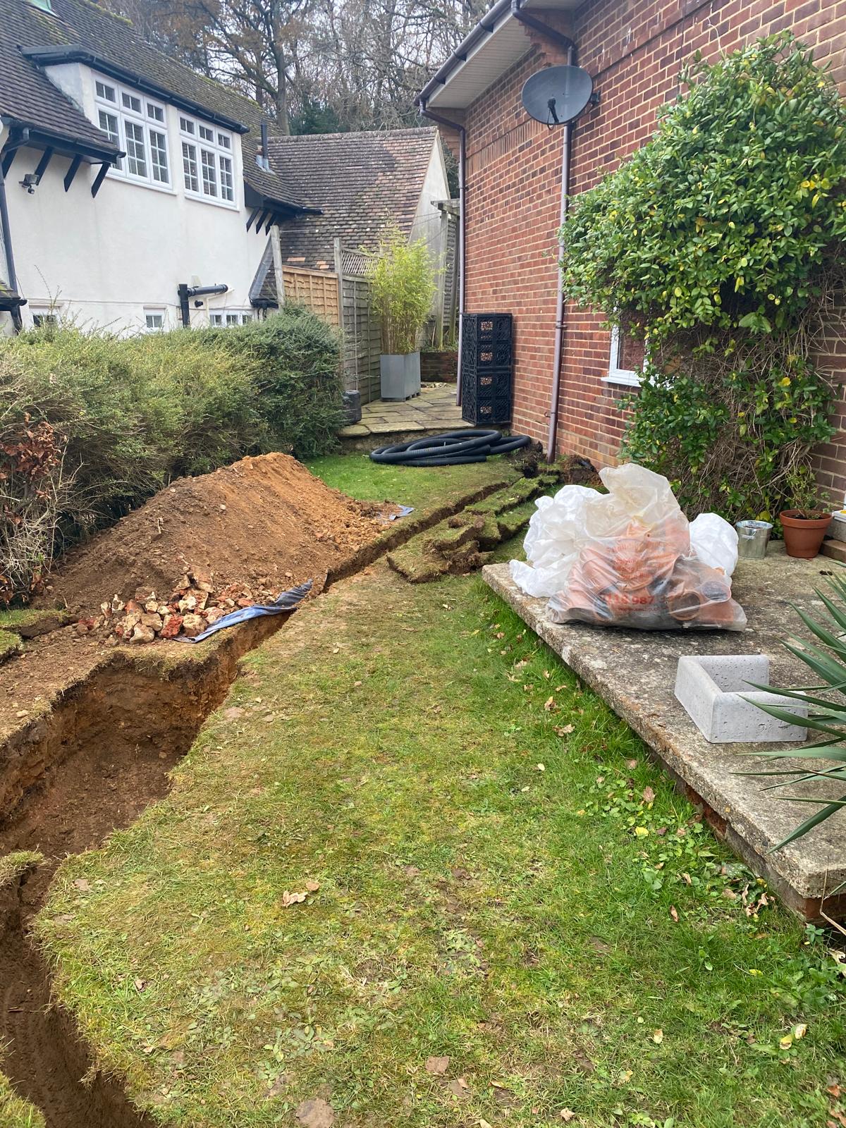Our team carefully dug and prepared trenches before installing the pipework with the correct fall to ensure efficient flow. A new soakaway system was then installed to provide a long term solution for surface water drainage. Once complete, the ground was fully reinstated and the site left clean and tidy.