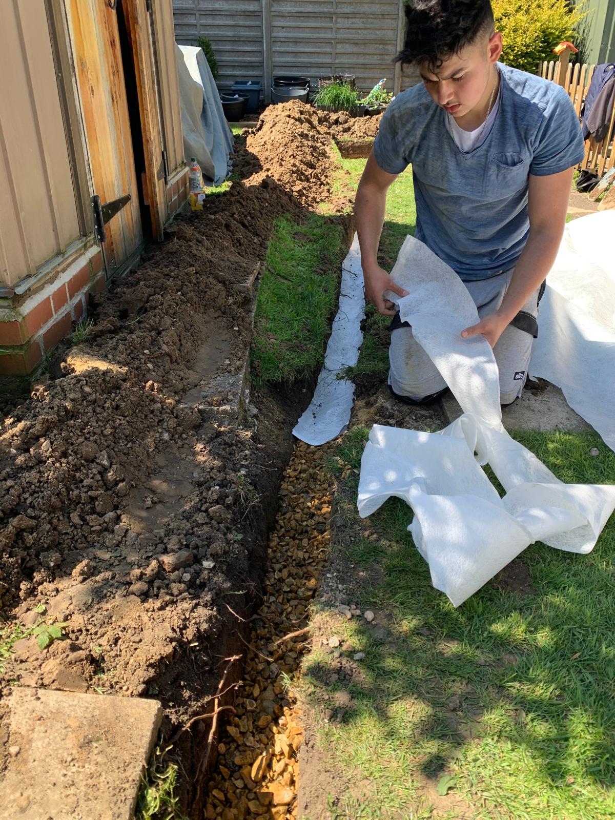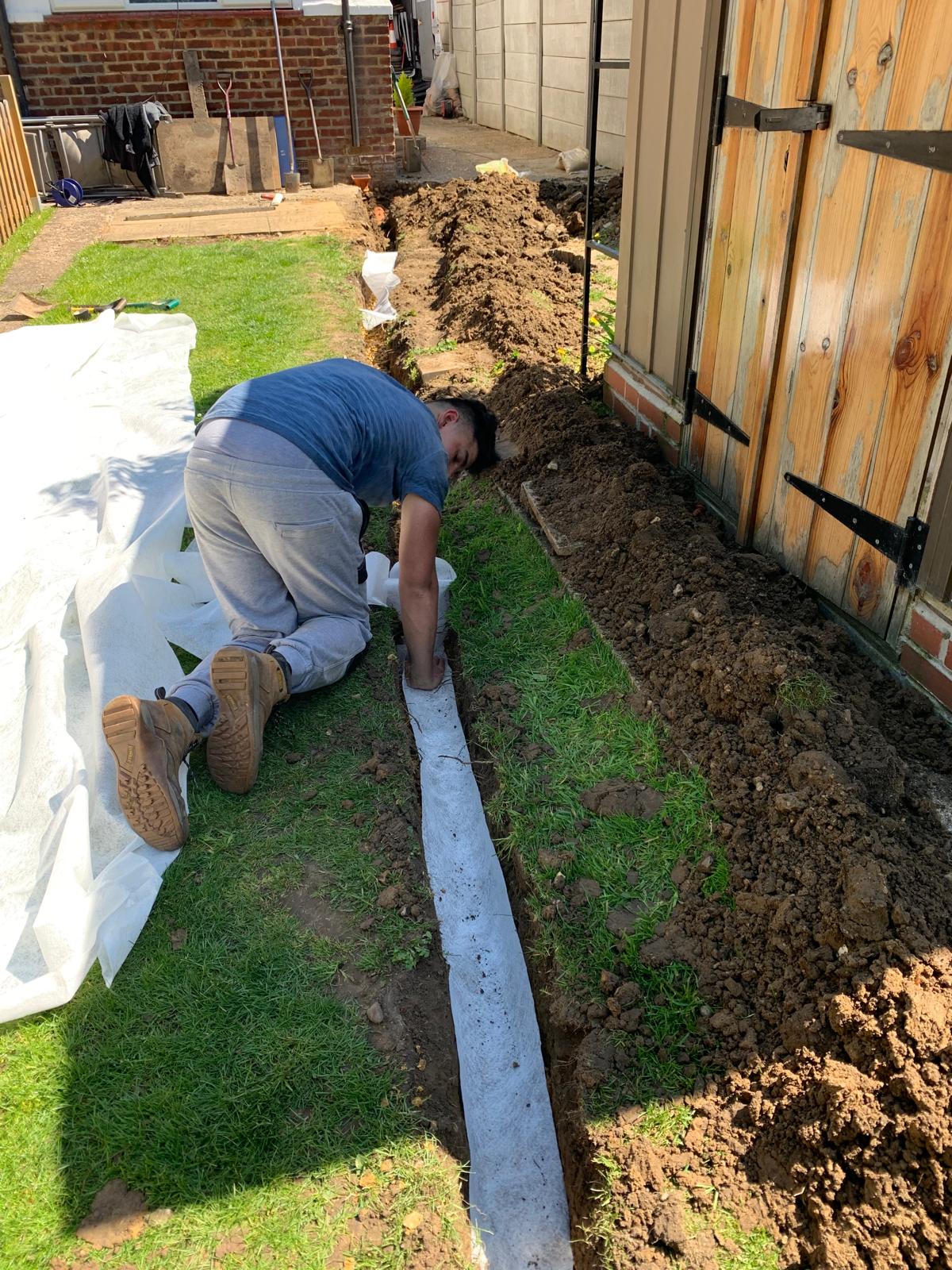 The works involved a complete excavation to install new drainage runs and a soakaway system designed to improve overall drainage performance and prevent future water build up.